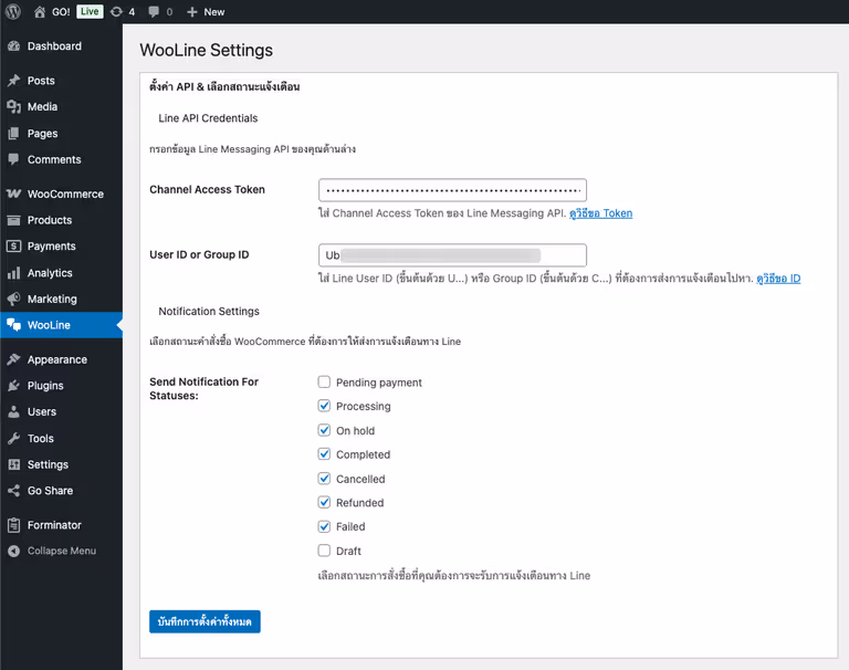 รีวิว WooLine ปลั๊กอิน WooCommerce แจ้งเตือนออเดอร์ผ่าน Line จ่ายครั้งเดียวจบ คุ้มค่า ไม่พลาดทุกคำสั่งซื้อ!